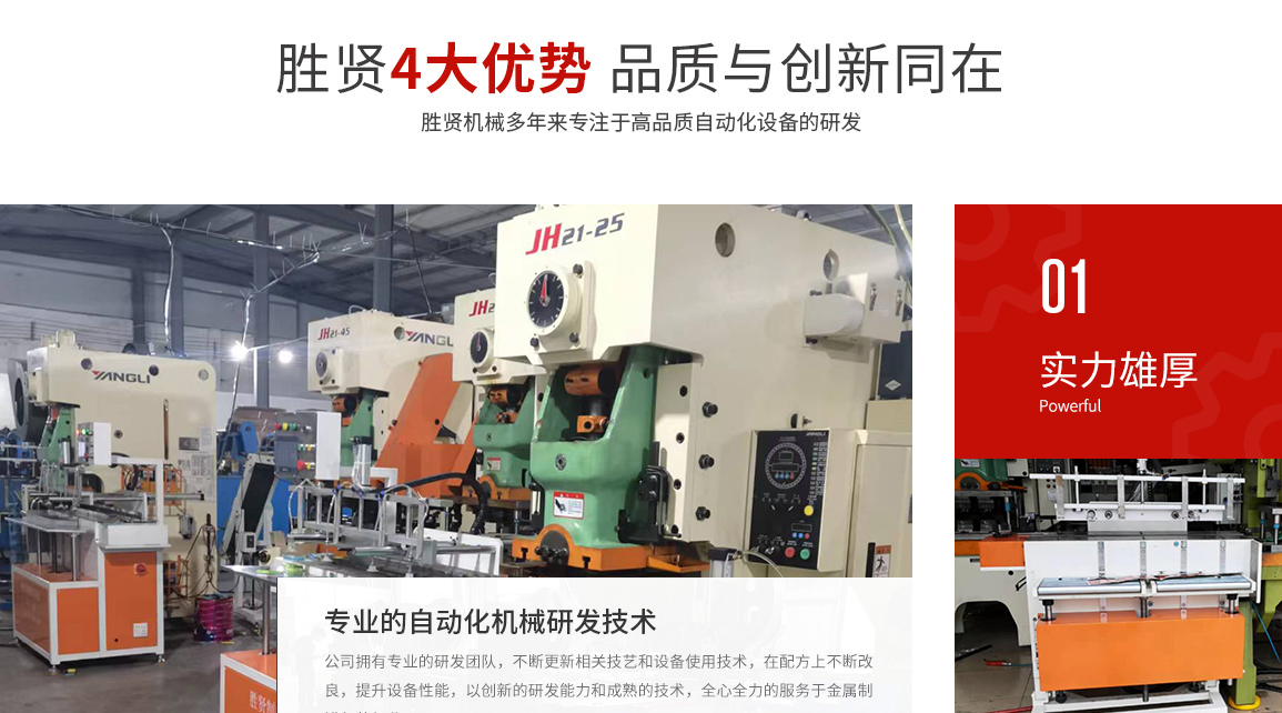東莞市勝賢機(jī)械設(shè)備有限公司,是一家專業(yè)從事金屬制罐包裝行業(yè)的整套自動化設(shè)備和模具開發(fā)、制造與銷售的公司,擁有成熟的技術(shù)和創(chuàng)新開發(fā)能力。我們擁有有一批多年從事設(shè)計、研究開發(fā)的工程師,和設(shè)備、模具制作的技術(shù)人才。不斷推進(jìn)制罐行業(yè)向高效、環(huán)保、節(jié)能、操作簡易化的方向發(fā)展。